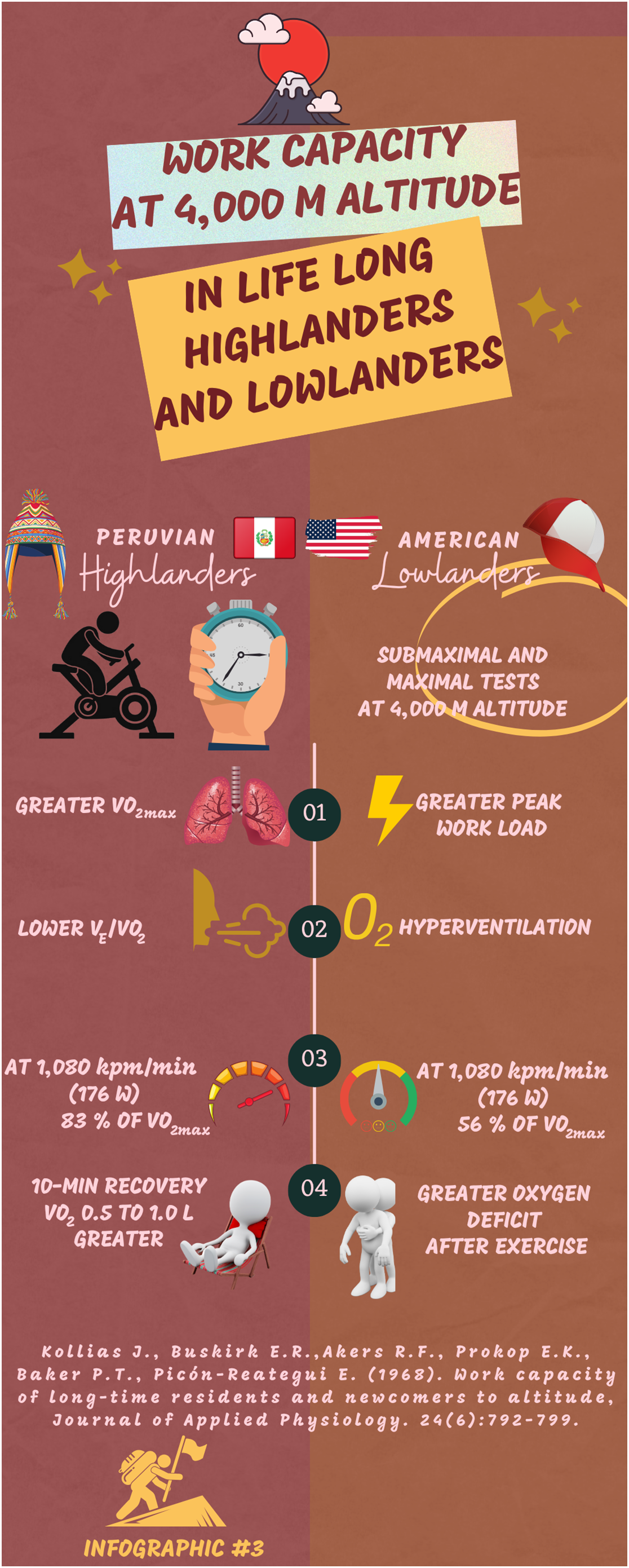 In the summer of 1965, Professor Elsworth Buskirk (Human Performance Research Laboratory at Penn State University) and Professor Paul Baker (Department of Sociology and Anthropology at Penn State University) conducted a series of physiological experiments in the remote high-altitude Andean town of Nuñoa, Peru (4,000 m; PB = 470–476 mmHg) (Littleet al., 2025; Frisancho, 2025). Three papers were published comparing several physiological mechanisms and exercise capacity in a group of high-altitude natives (Quechua ethnicity), lifelong residents from Nuñoa, and a group of partially acclimatized lowlanders from the United States of America (6-track athletes from Penn State Track Team, postgraduate students, and researchers).