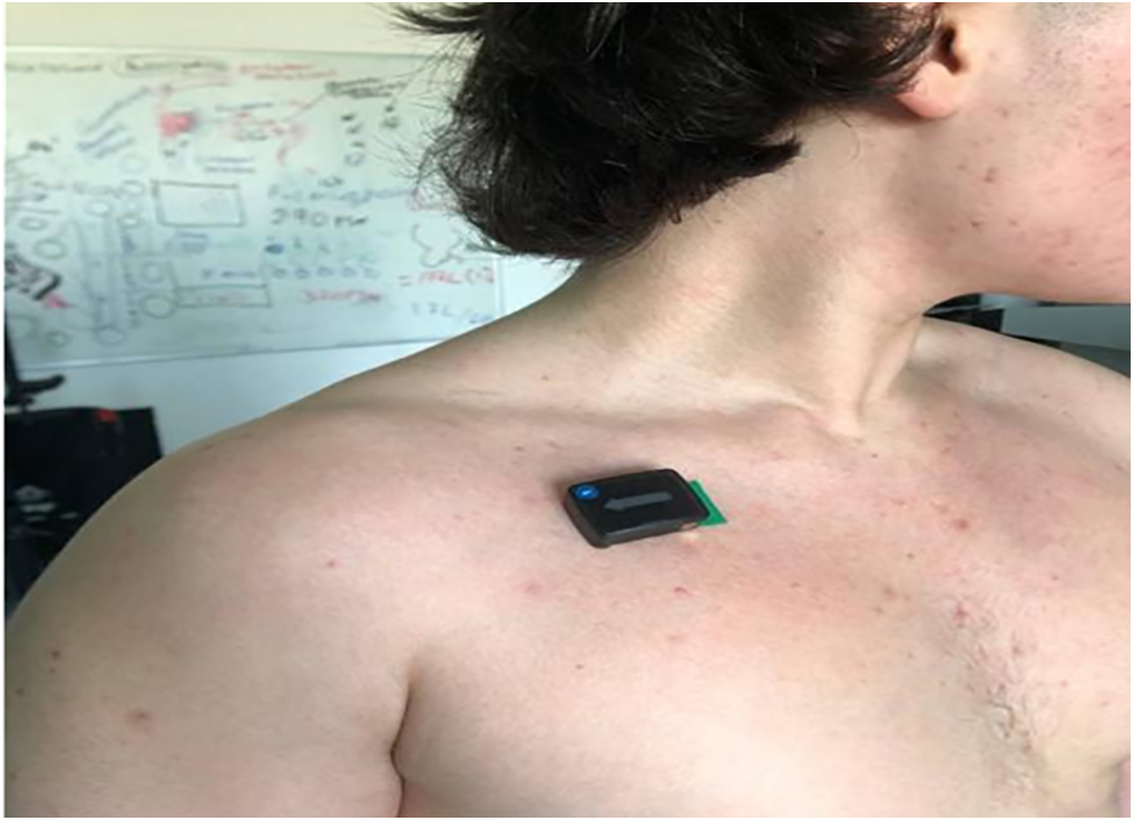 Fig. 1. Delsys EMG sensor set on the clavicular head of the PM muscle.