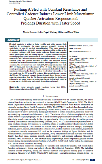 Hyder, A., Swank, C., & Rosario, M. G. (2019). Pushing a Sled: Assessing its Impact on Gait Temporospatial Parameters in Young Healthy Adults [Texas Woman’s University]. Journal of Student Research. https://doi.org/10.47611/jsr.vi.673.