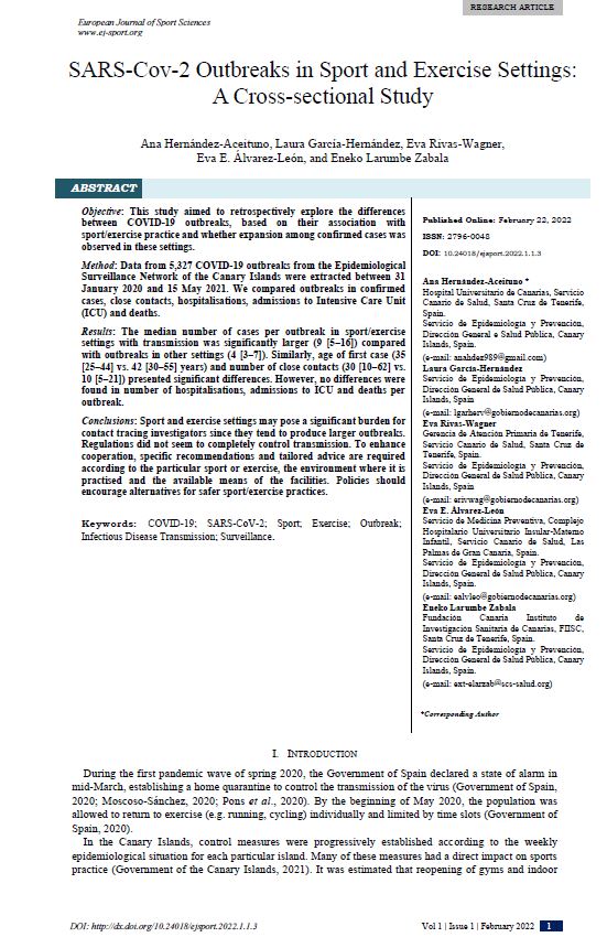 SARS-Cov-2 Outbreaks in Sport and Exercise Settings: A Cross-sectional Study