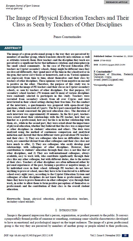 The Image of Physical Education Teachers and Their Class as Seen by Teachers of Other Disciplines