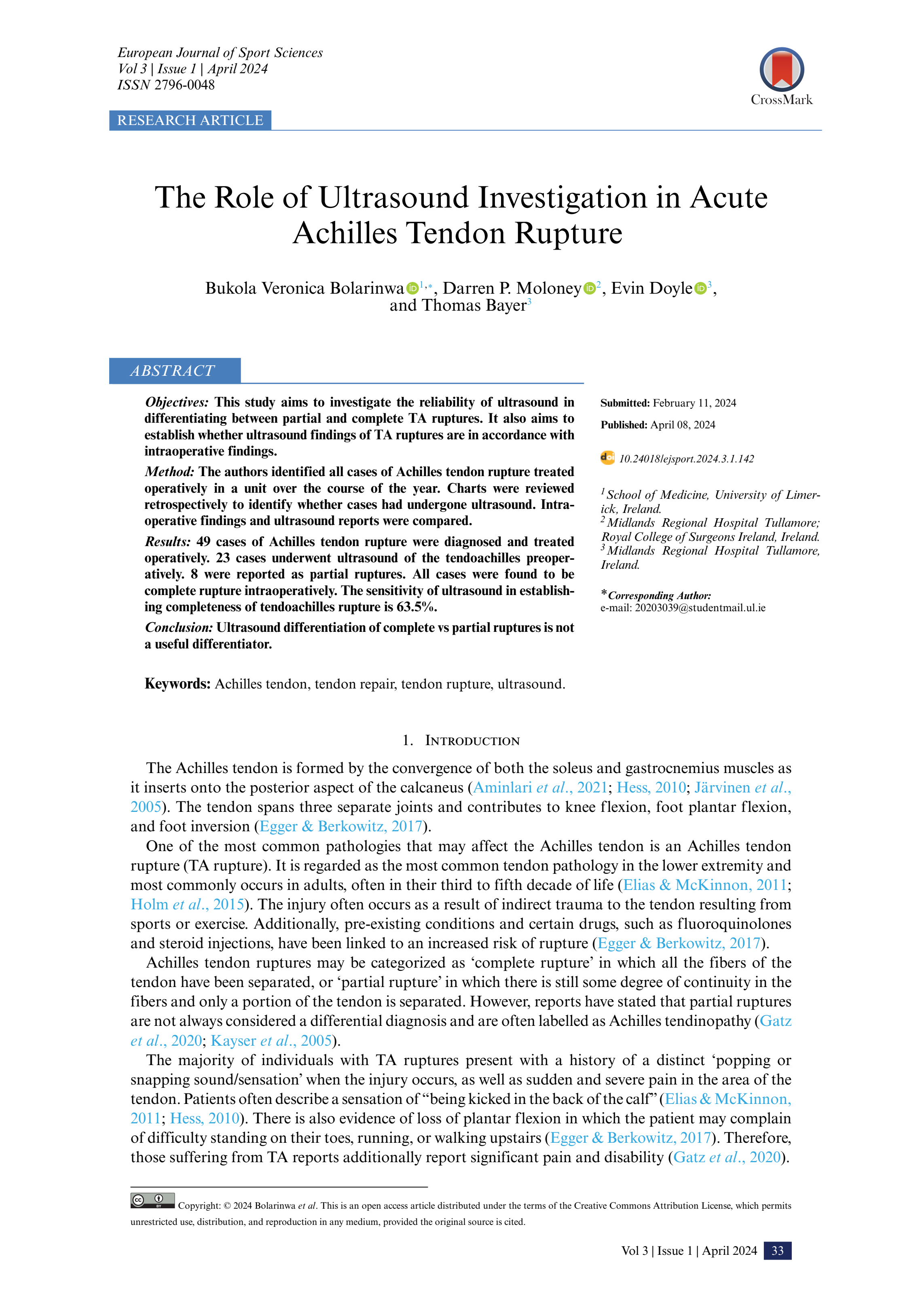 The Role of Ultrasound Investigation in Acute Achilles Tendon Rupture