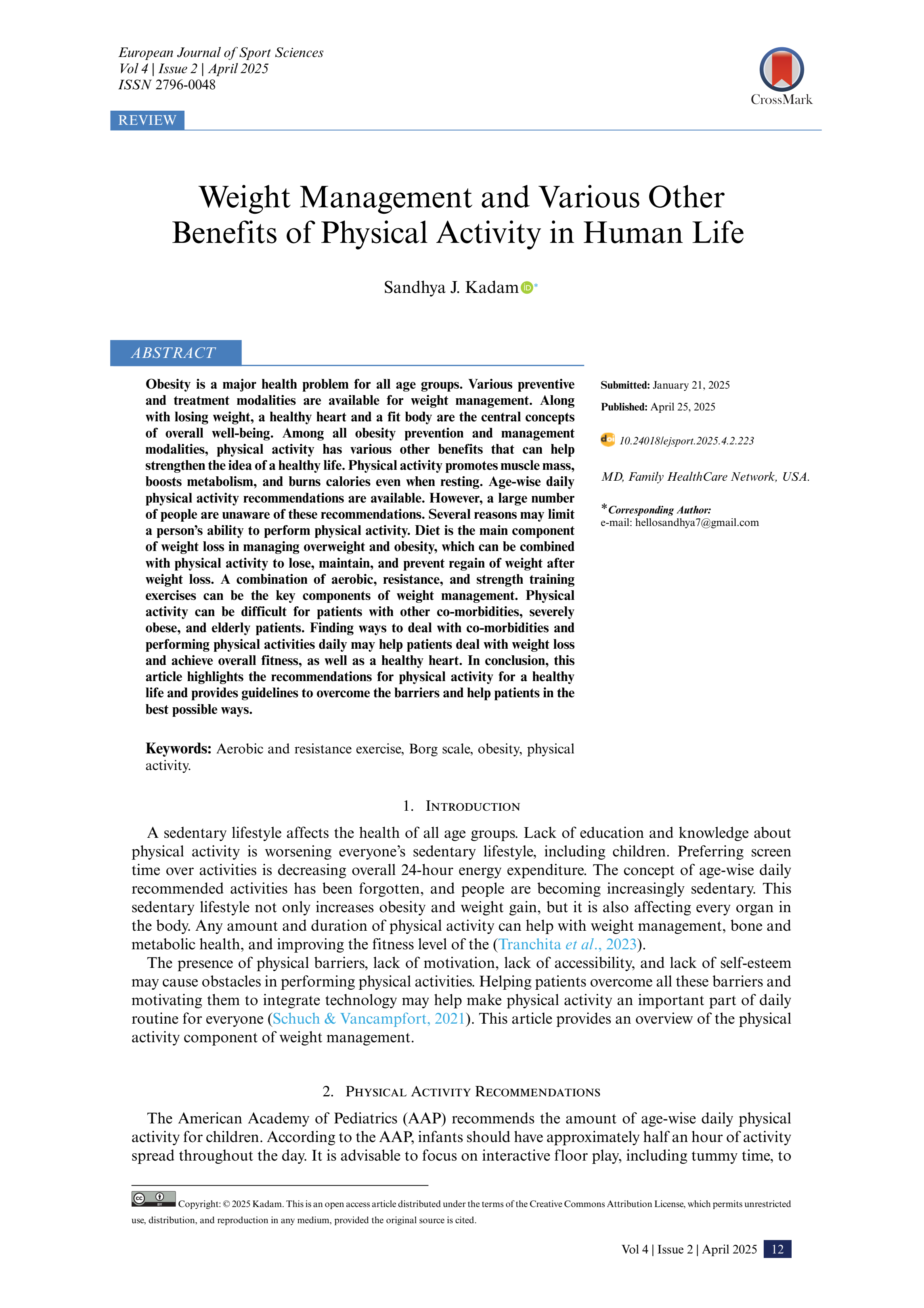 Weight Management and Various Other Benefits of Physical Activity in Human Life