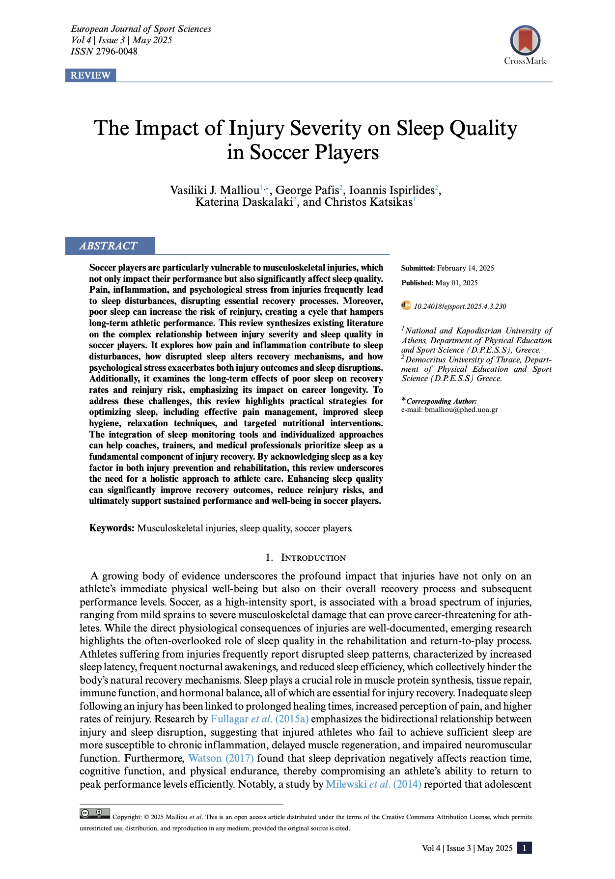 The Impact of Injury Severity on Sleep Quality in Soccer Players